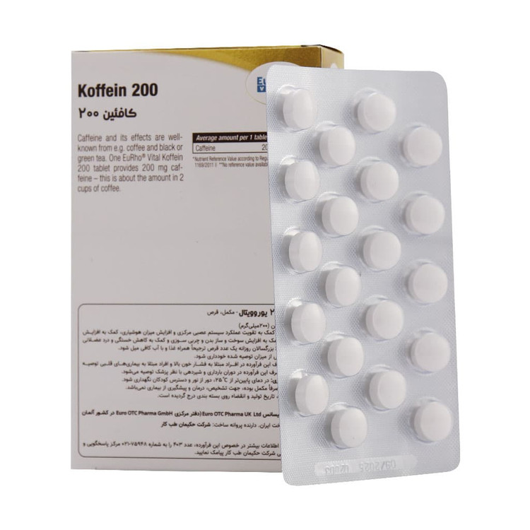 قرص کافئین 200 میلی گرم یوروویتال 60 عدد