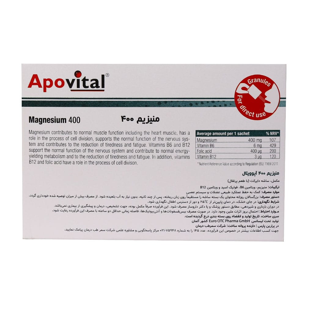 ساشه منیزیم 400 آپوویتال 30 عدد