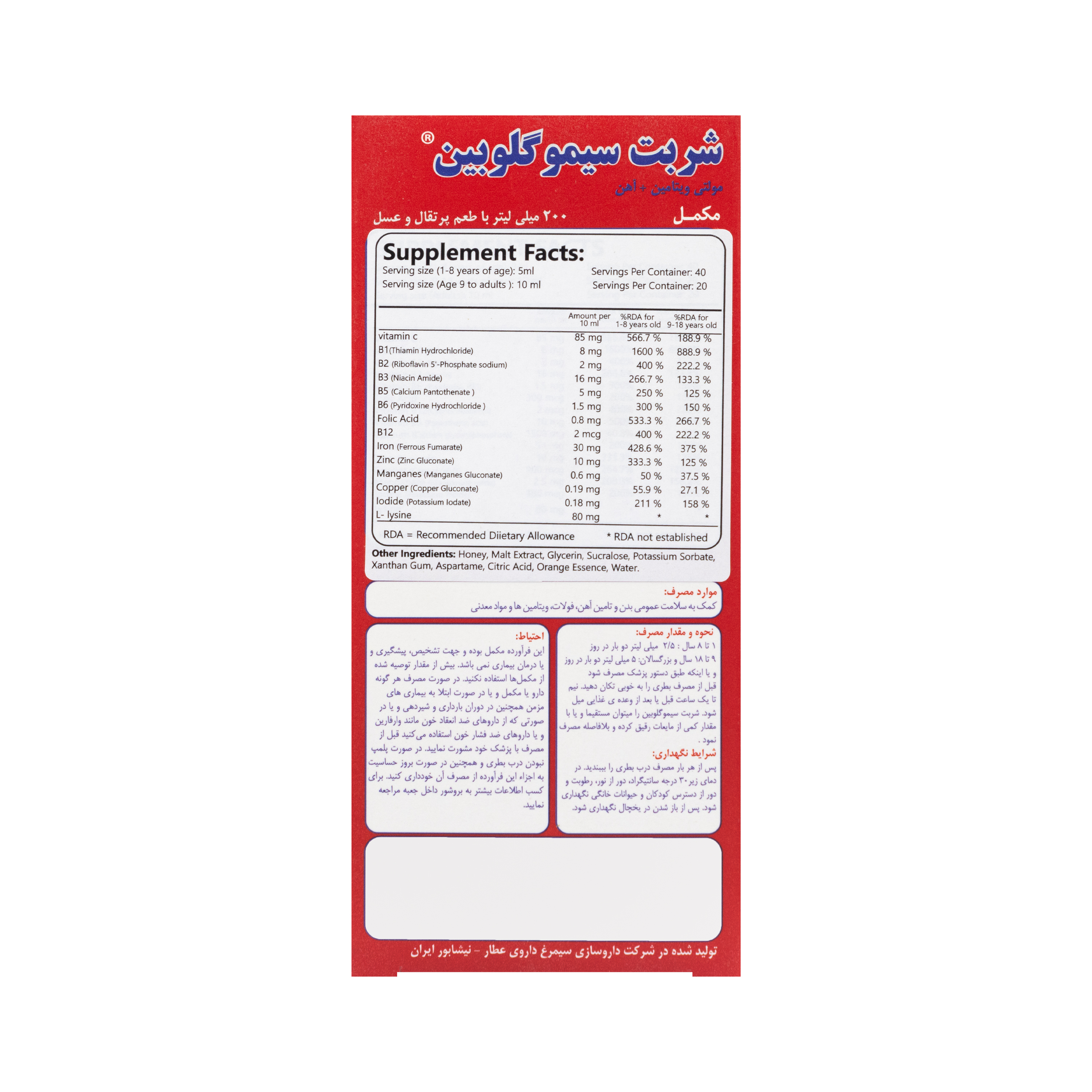 شربت سیموگلوبین کتابی 200 میلی لیتر سیمرغ