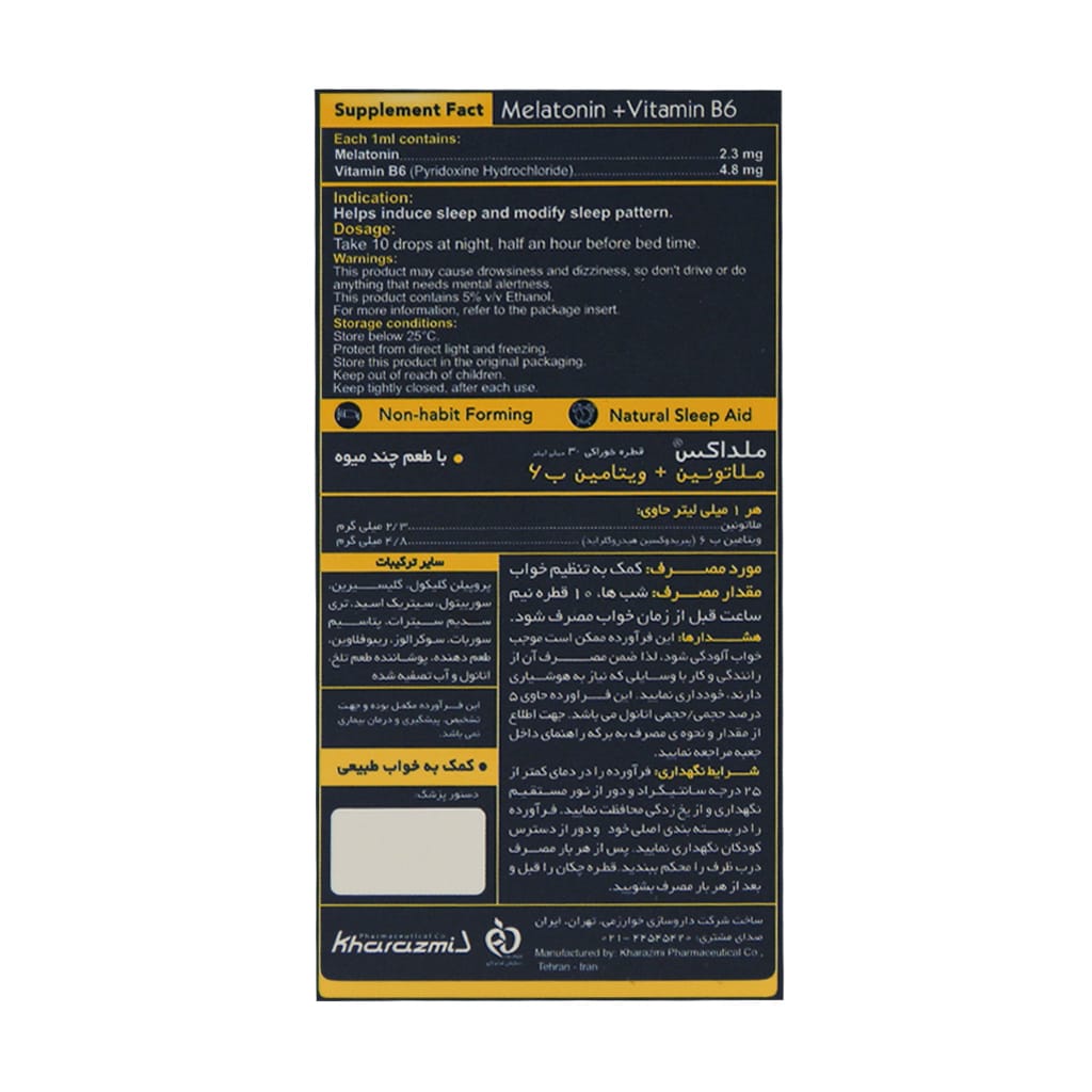 قطره ملداکس ملاتونین و ویتامین B6 خوارزمی 30 میلی لیتر