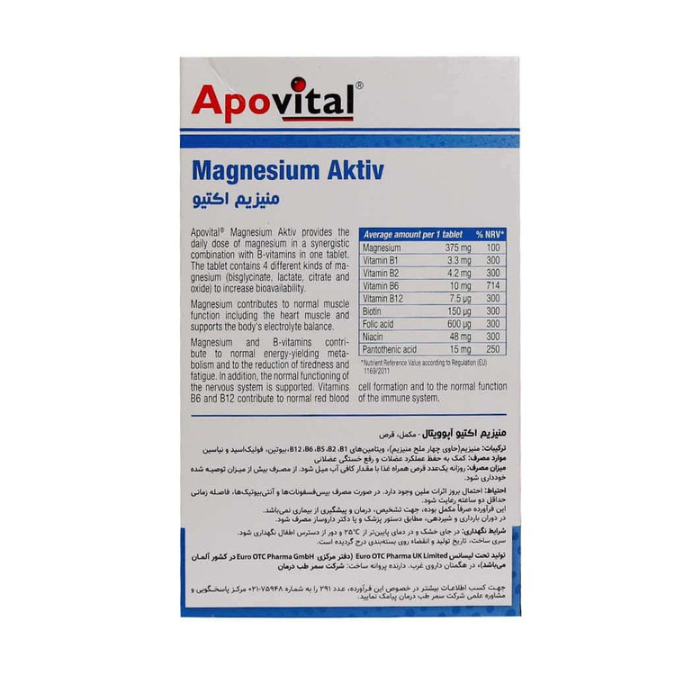 قرص منیزیم اکتیو آپوویتال 30 عدد