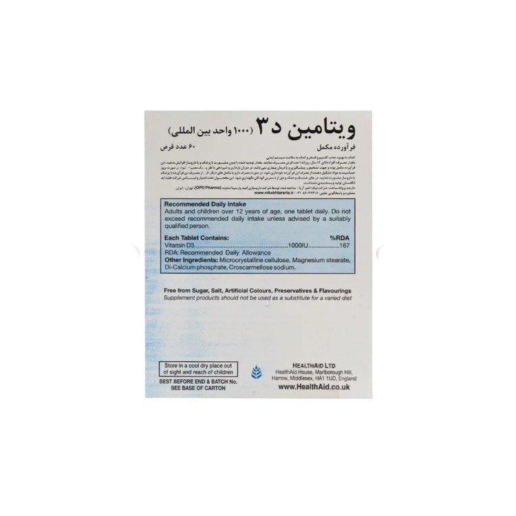 قرص ویتامین D3 هلث اید ۱۰۰۰ واحد، بسته ۶۰ عددی