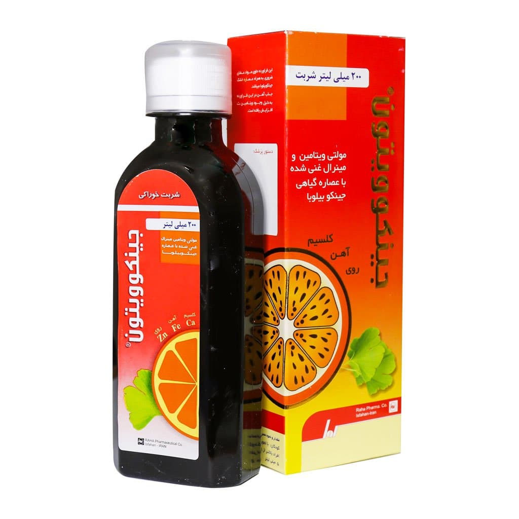 جینکوویتون شربت مقوی مولتی ویتامین در بطری 200 میلی لیتری با طعم دلپذیر پرتقالی در شرکت داروسازی رها تولید و در داروخانههای معتبر کشور به فروش میرسد.