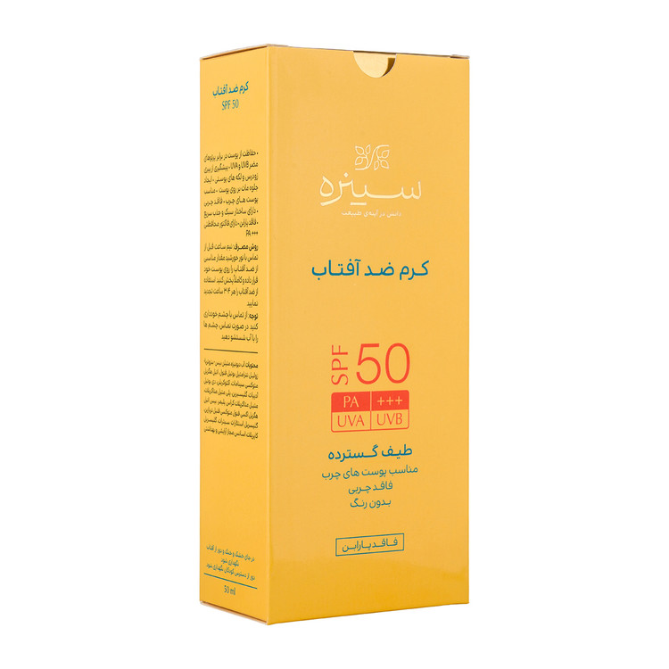 کرم ضدآفتاب بیرنگ سینره مدل SPF50 مناسب پوست چرب، حجم 50 میلیلیتر