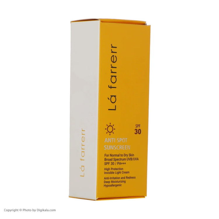 کرم ضدآفتاب و ضدلک بیرنگ لافارر مدل SPF30، مناسب پوستهای خشک و معمولی، حجم 40 میلیلیتر
