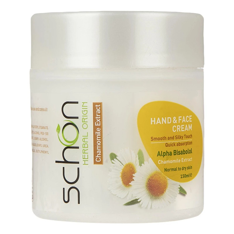کرم مرطوبکننده دست و صورت شون، مدل عصاره بابونه، مناسب پوستهای نرمال تا خشک، حجم 150 میلیلیتر