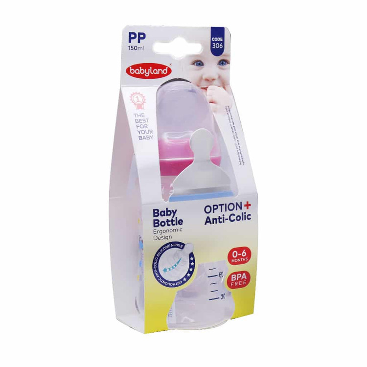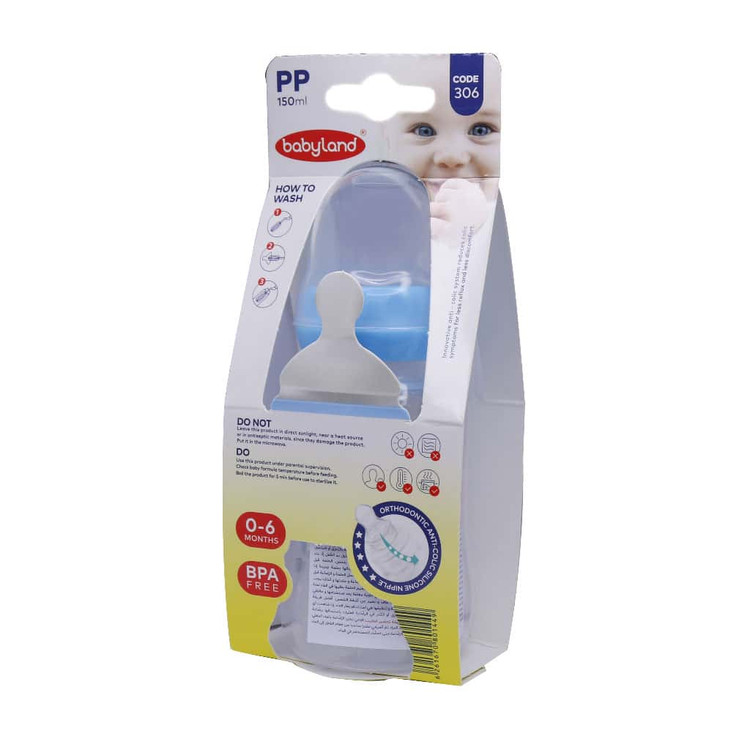 شیشه شیر بیبی لند کد 306 مناسب 0 تا 6 ماه 150 میلی لیتر