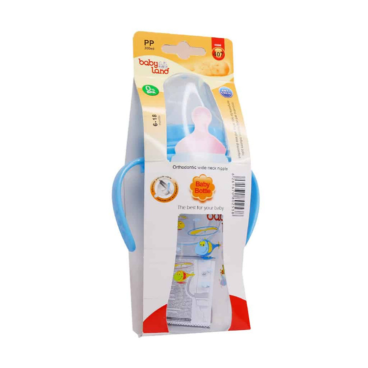 شیشه شیر دسته دار آنتی کولیک بیبی لند کد 407 حجم 300 میلی لیتر