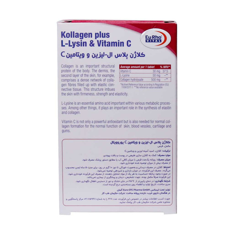 قرص کلاژن پلاس ال لیزین و ویتامین C یوروویتال 60 عدد