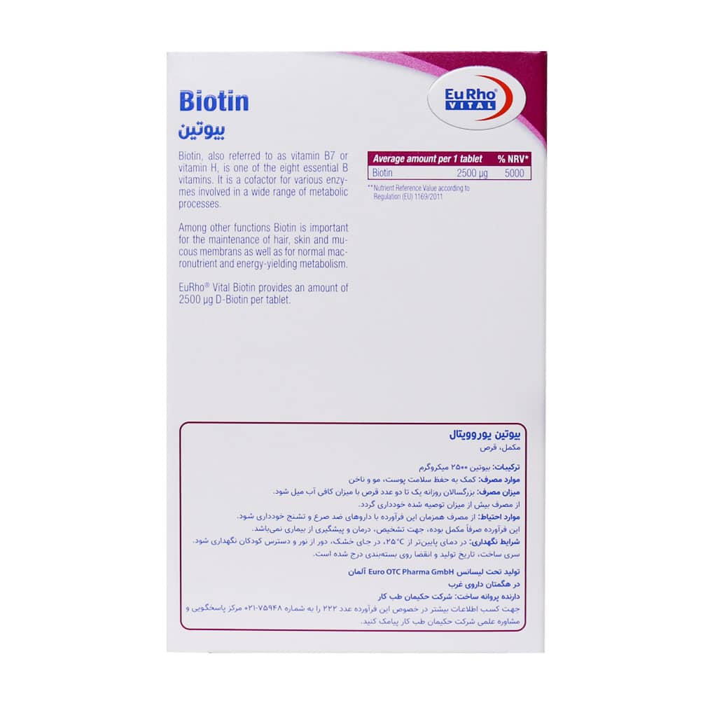 قرص بیوتین 2500 میکروگرم یوروویتال 60 عدد