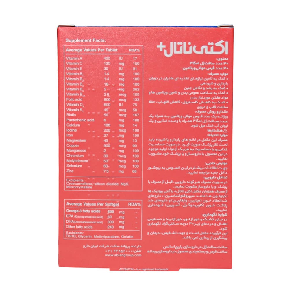 مولتی ویتامین اکتی ناتال پلاس 60 عدد